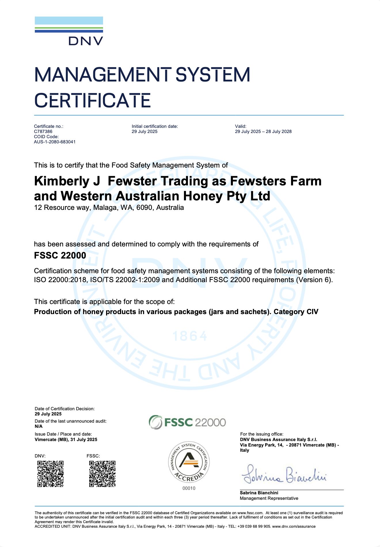 All Fewster’s Farm Jarrah honey is tested for TA in the Eurofins laboratory located in Waikato University, New Zealand.